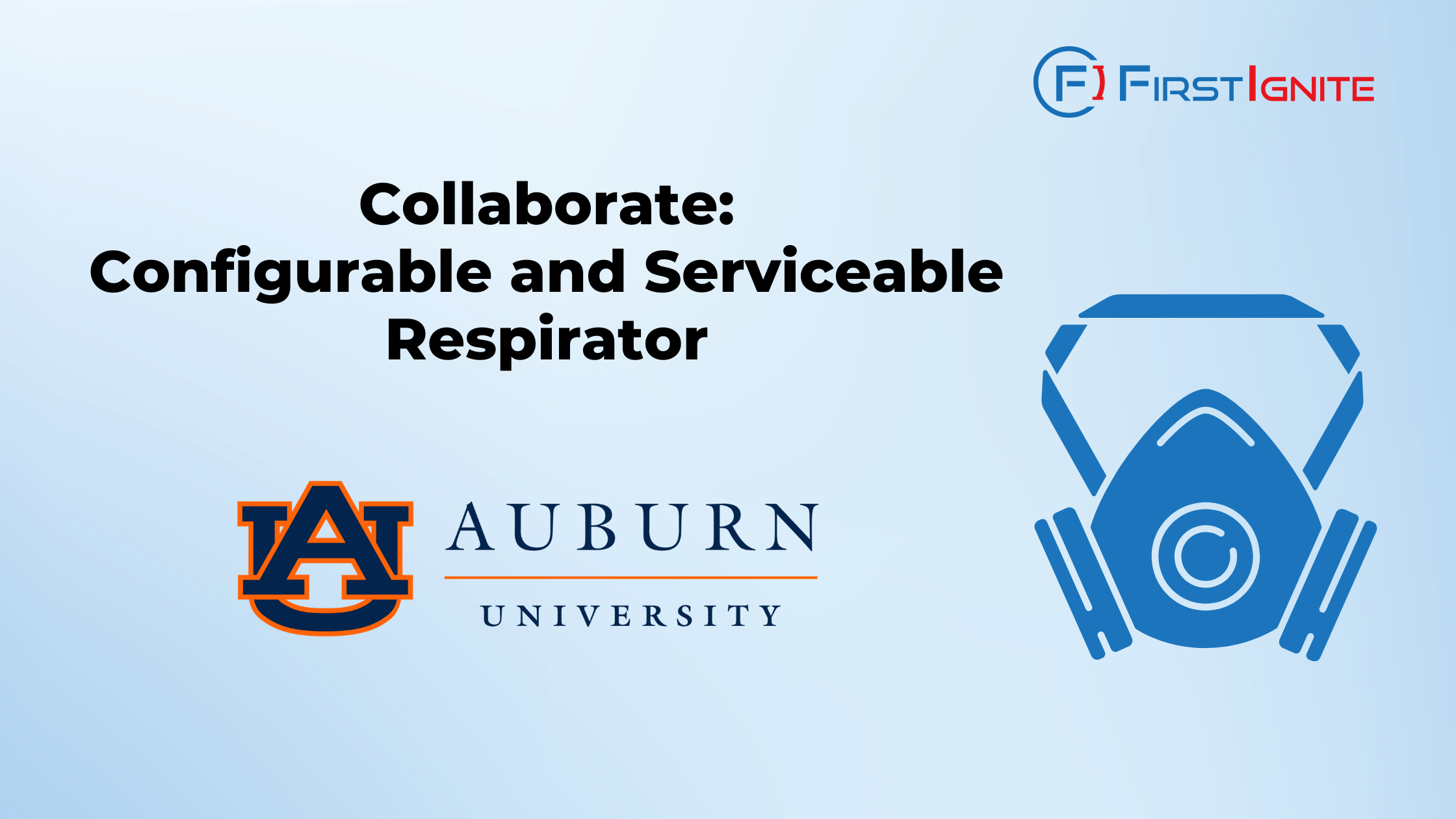 FirstIgnite is supporting the commercialization of Auburn University’s configurable and serviceable respirator technology. Featuring standardized fittings and easy assembly and disassembly, this respirator system allows for greater part interchangeability between half- and full-face configurations. This technology is adaptable, reusable, convenient, and comfortable.