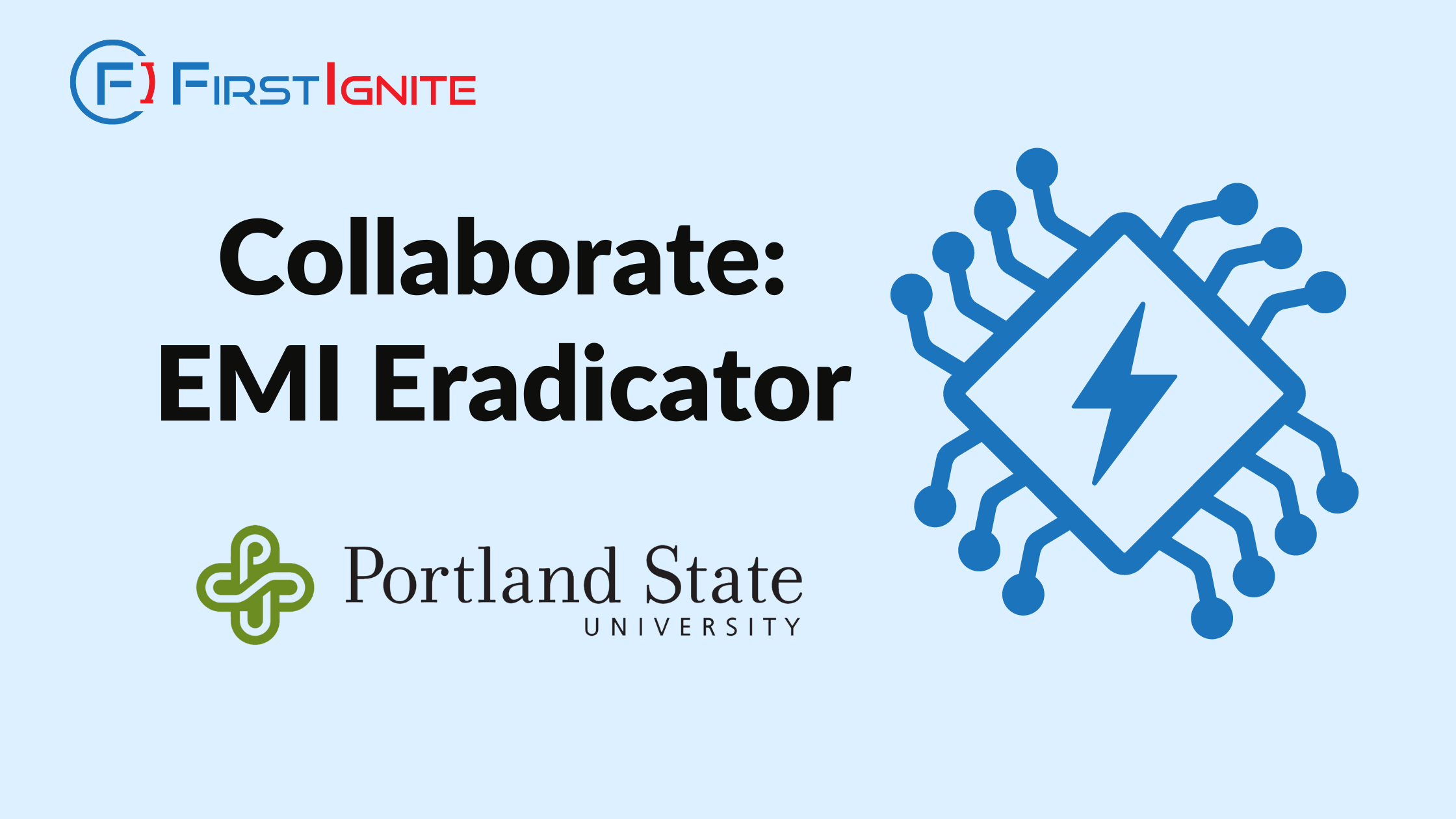FirstIgnite is supporting the commercialization of Portland State University’s EMI eradicator technology, an advanced PWM (Pulse Width Modulation) approach for modern semiconductor devices. This technology enhances power transfer between energy sources by addressing key challenges associated with faster switching frequencies and transition times.