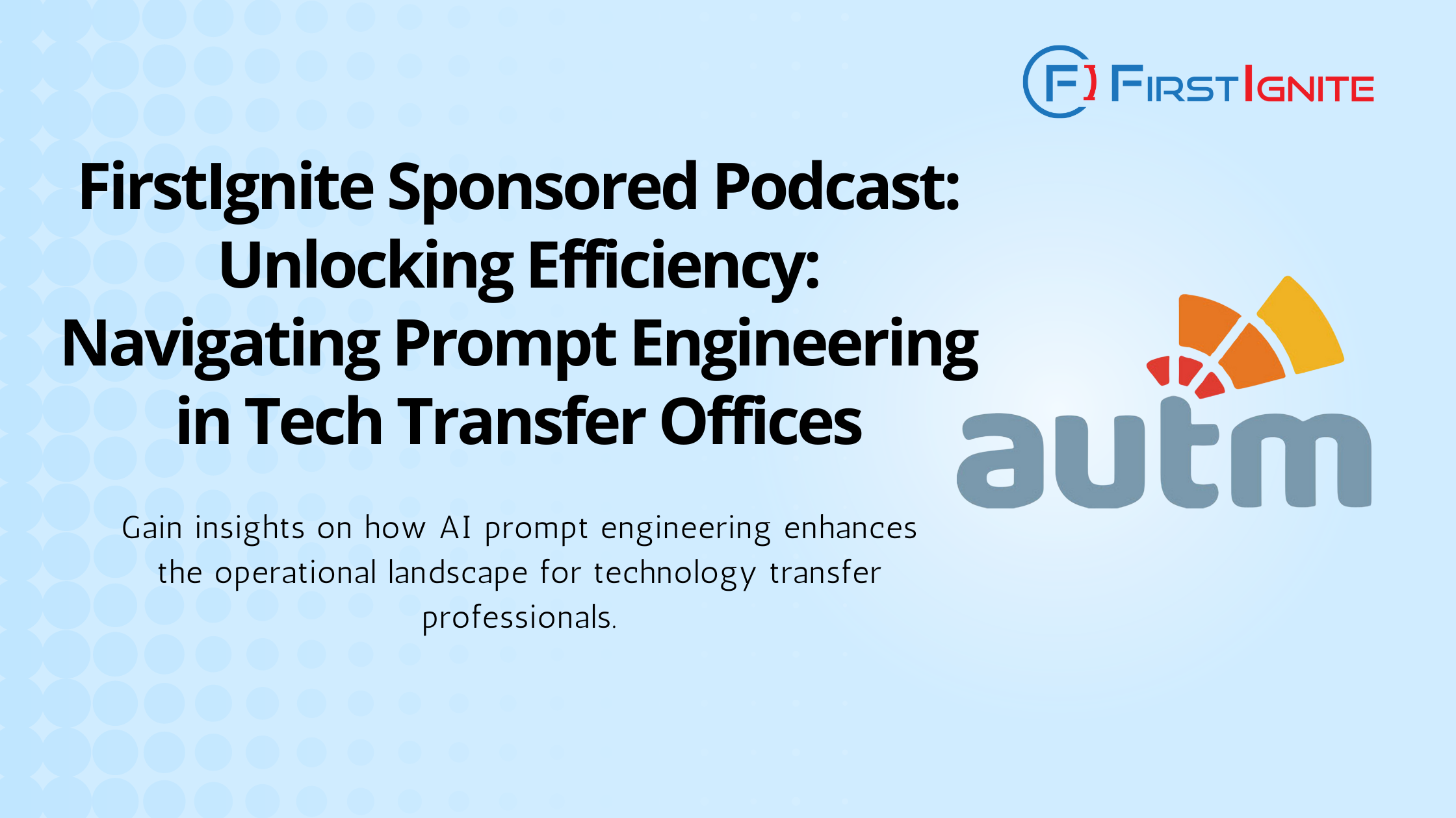 FirstIgnite proudly sponsored AUTM’s podcast episode titled “Unlocking Efficiency: Navigating Prompt Engineering in Tech Transfer Offices.” The podcast delved into the transformative power of prompt engineering, shedding light on how it enhances the operational landscape for technology transfer professionals.