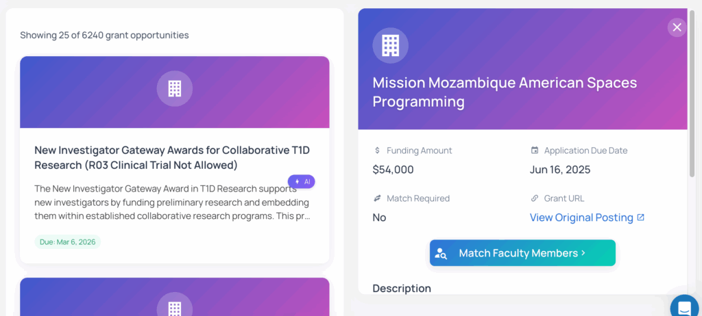 Access a vast database of government and foundation grants relevant to research across disciplines. Our platform keeps you connected to the latest funding opportunities that matter to your faculty.